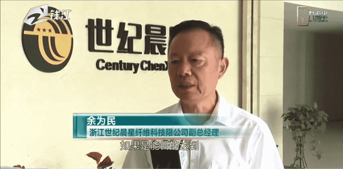 Yu Weimin, directeur général adjoint de Zhejiang Century ChenXing Fiber Technology Co., Ltd., répondant aux questions des journalistes